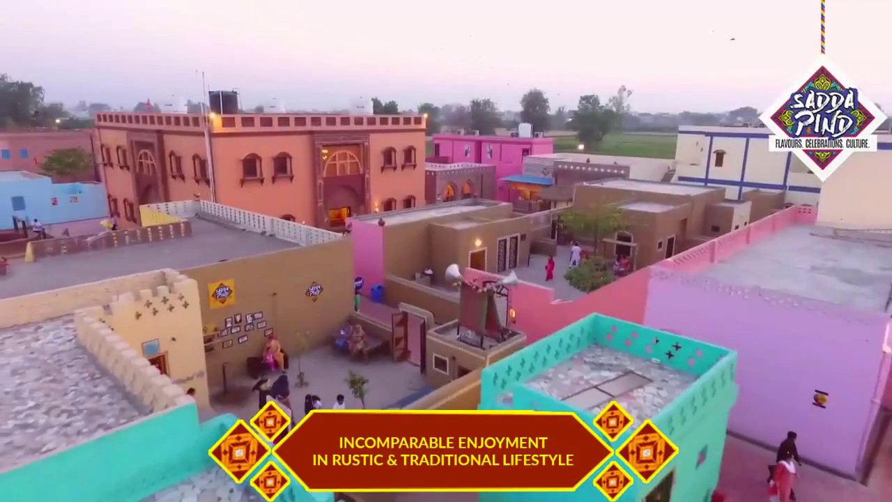 Sadda Pind is the portrait of Punjab. Spread over 12 acres and marked by Punjab's vibrance and tradition, it showcases the lifestyle in a pre-Independence Punjabi village. The village has constructed live brick-and-stone houses of the sunar, kumhar, lohar, kissan, sarpanch, zamindar, nambardar and tangewala. Just like in a PIND, each house features the life of a rural artisan within authentic rustic interiors and celebrates their work. The place, bedecked with vibrant lights and throbbing with Punjabi music all day, glorifies Punjabi folk charms by presenting the talents of traditional local artists. The harmonious and musical culture of Punjab is displayed in the baraat ghar and the village haveli, where folk songs and dances are performed all day. The display of folk dances like bhangra, jhumar, kikli and gidda, and musical instruments like nagara, gagar and tumba represent the endless energy of Punjab. Every day, guests are invited to participate in spirited and musical sangeet, jaago and baraat processions around the resort. In addition, visitors can watch stunning performances of magicians, gatka (Sikh martial arts) and stuntsmen in a Maut Ka Kuan, compete in mela games like archery, bowling and balloon shooting, and ride on horse carts and camel carts.